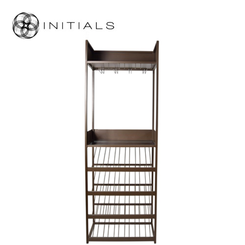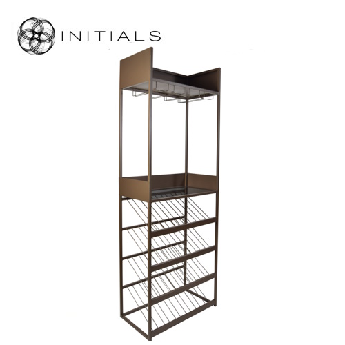 Kasten - Deze wijnkast is perfect vanwege het open frame. Dankzij het open frame ervaar je toch de grootte van de ruimte en laat het licht door. Het frame is gemaakt van ijzer en de middelste plank van topaz glas. De 4 draadplanken hebben elk een capaciteit voor 6 flessen. De afmetingen zijn 70X40X200 centimeter. De metallic bruine kleur zorgt voor een warm design.
